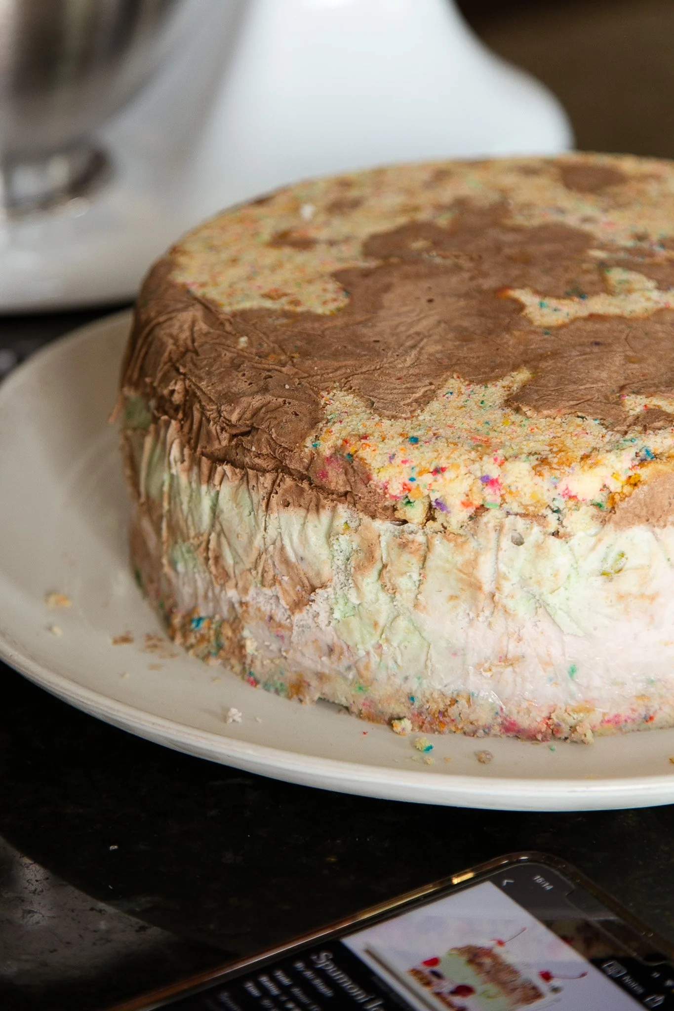 Jordan’s birthday and this cake kicked our summer break off to a good start. After having this cake, I can’t think of anything else but making more ice cream desserts. The kids loved the cake so much they demanded that ice cream cake be the official birthday cake in the Hyde house. I was a bit sad because I have strong memories of a certain confetti cake that I wanted to make every birthday to relive one of my favorite childhood memories, but I guess I should make space for my kids’ favorite childhood moments. At least this change means less cake and icing waste. I have one kid who likes just the cake and another who likes just the icing. With ice cream desserts on everyone’s mind this summer, I’m imagining all the ice cream flavor combos I can create. Ube, mango. . . oh, and pandan!